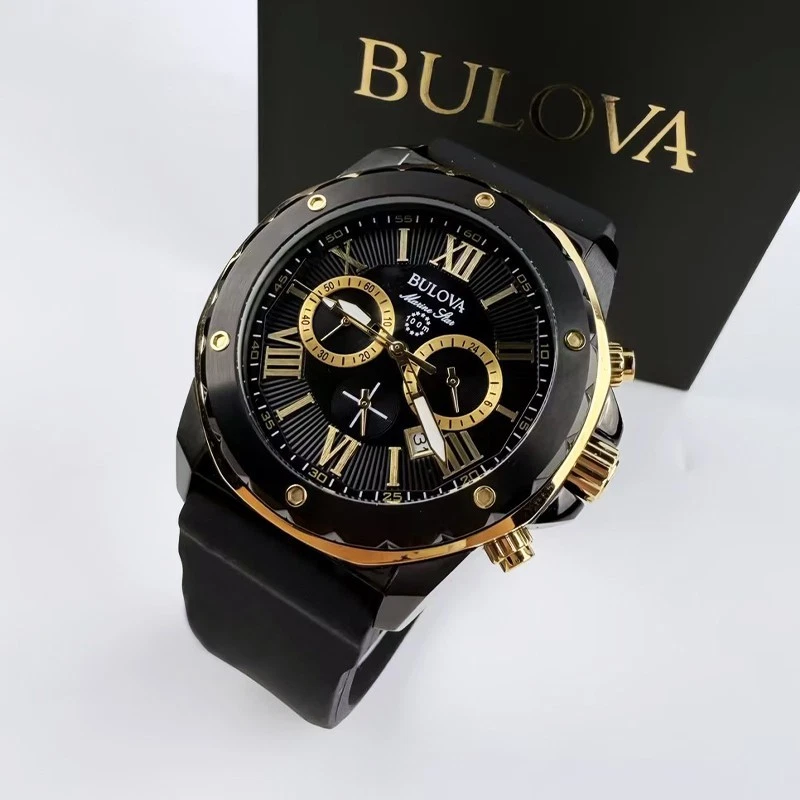 Bulova Marine Star 98B278 Black Dial/Rubber Men's Quartz chronograph Watch 44mm